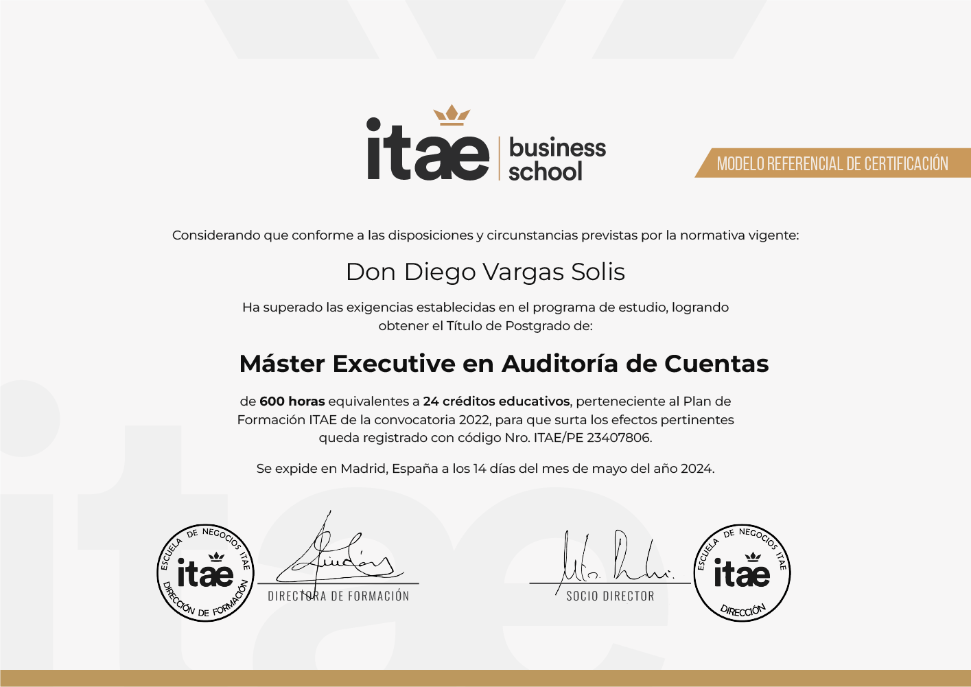 - € 200.00 Certificado de Master Executive