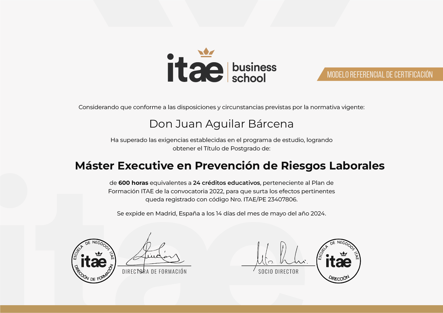 El Master Executive en Prevención de Riesgos Laborales de ITAE Business School entrega a los profesionales que se desenvuelven en áreas de seguridad y salud en el trabajo, conocimientos en torno a la identificación de peligros y la prevención de riesgos en el ámbito laboral, logrando establecer medidas preventivas de control en los ambientes de trabajo, y así mejorar las condiciones de los colaboradores en la organización.